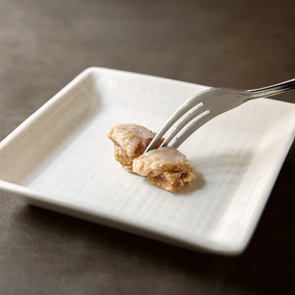 開発担当者も、「今まで食べたことがない!」と驚くほど柔らかなお肉。愛犬への特別なご褒美やギフトにもぴったりな逸品です。