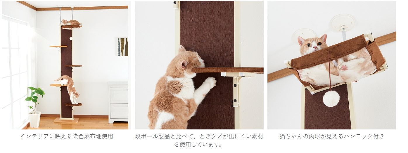 - 場所をとらないスリムなキャットツリー。 クリアハンモック付きと爪とぎが出来るキャットタワーです。
